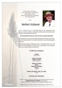 Norbert Hubauer ist am Mittwoch den 17. Dezember nach schwerer Krankheit verstorben.